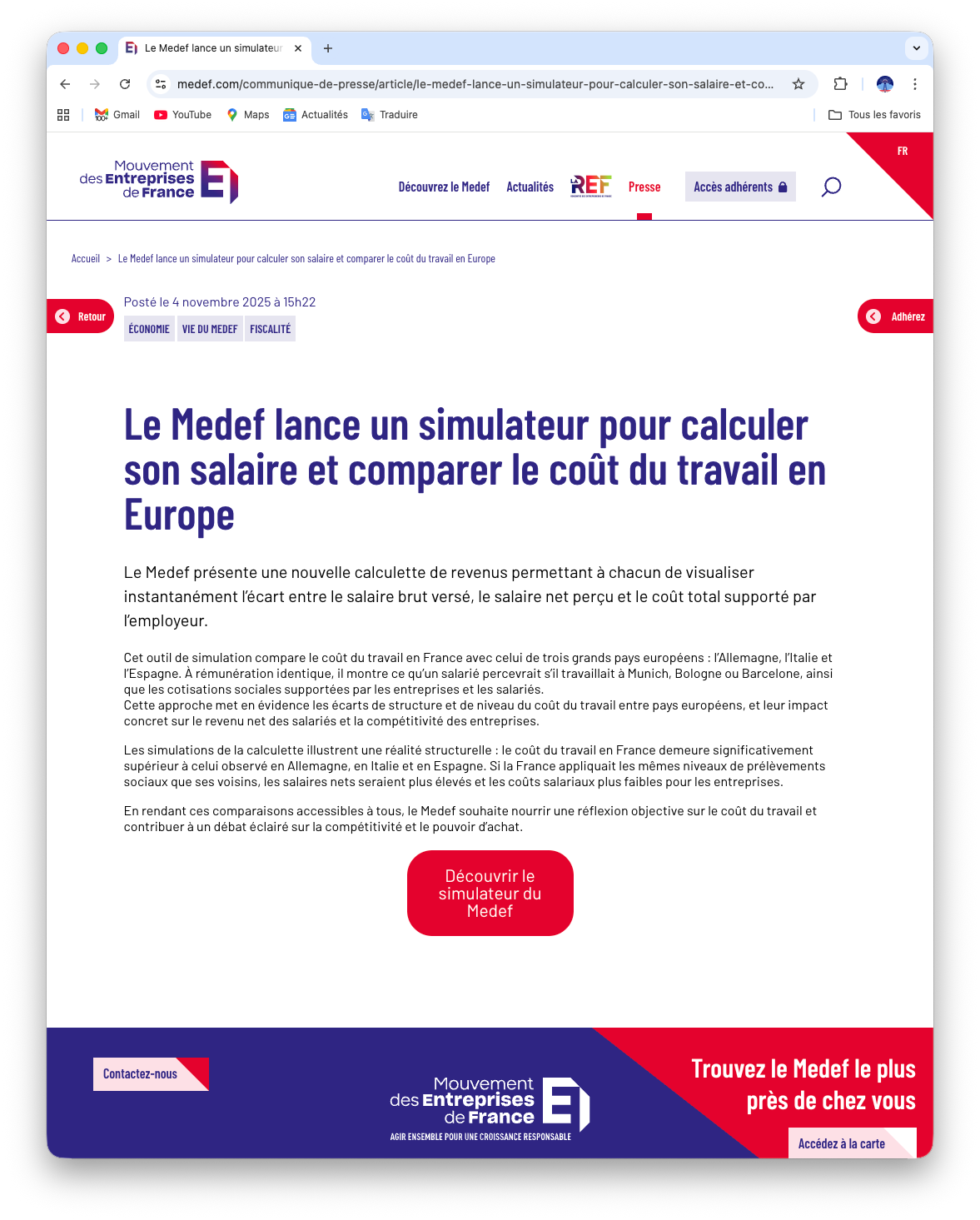 La calculette du MEDEF semble transparente : on entre un salaire brut, on choisit un pays, et l’outil affiche le salaire net et le coût pour l’employeur. Tout paraît simple, presque pédagogique. Mais si on regarde de plus près, on se rend compte que l’outil n’a pas été conçu pour refléter la réalité économique, mais pour produire un effet politique.