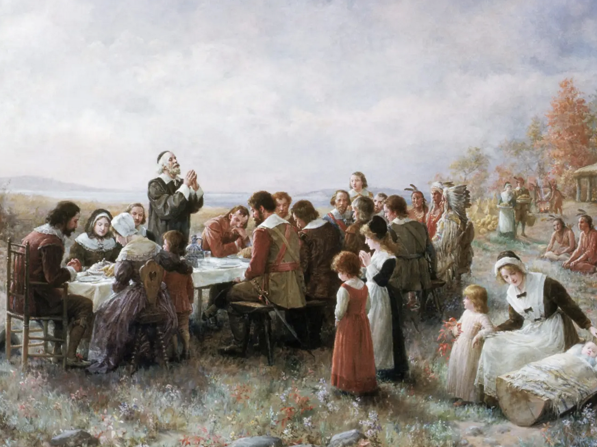 L’un des symboles de cette légende dorée n’est autre que la fête de Thanksgiving. Chaque quatrième jeudi de novembre, des millions de familles américaines se réunissent autour d’une dinde pour commémorer le « premier Thanksgiving » (en 1621), un repas de trois jours entre les pèlerins du Mayflower (des puritains anglais qui avaient fui les persécutions religieuses) et les Wampanoag de Massasoit, qui leur avaient appris à cultiver le maïs, à pêcher et à chasser, leur permettant de survivre à leur premier hiver meurtrier. Sans l’aide des Wampanoag, la colonie de Plymouth aurait probablement disparu. Pour tous, ou presque, aujourd’hui, la scène du 22 novembre 1621 est touchante et pleine de bons sentiments. L’histoire est pourtant plus sombre.